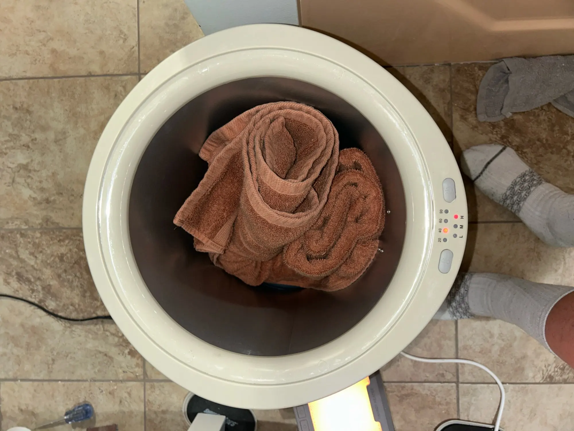While the bucket itself is an electronic appliance and cannot be submerged in water or machine washed, the interior can be easily wiped down with a damp cloth. If you use the warmer for a bathrobe or blanket, ensure those items are dry and clean before placing them inside to keep the unit pristine.